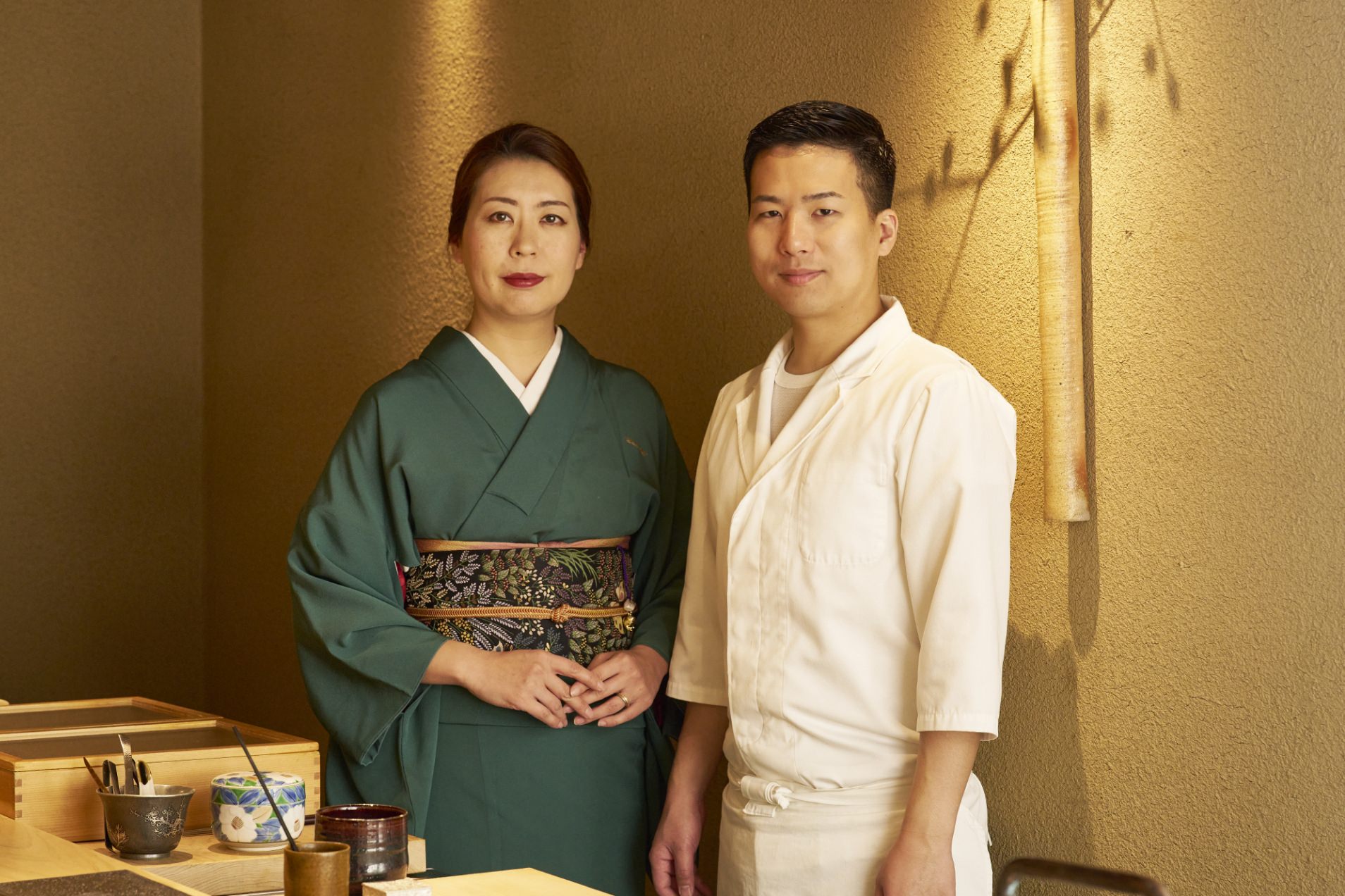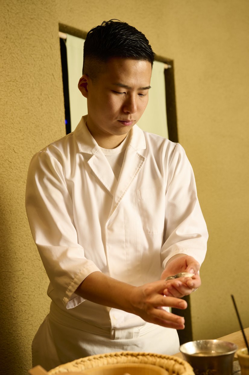 3つの名店で研鑽を積み、10年目で目標としていた独立を果たして西宮に「鮨たかまさ」をオープン。2024年2月には現在の場所に移転し、土壁や黒竹など天然素材を使ったこだわりの店を完成。「お客さまにいちばん美味しい鮨を召し上がっていただくために、納得のいく仕事を常に心がけています」。