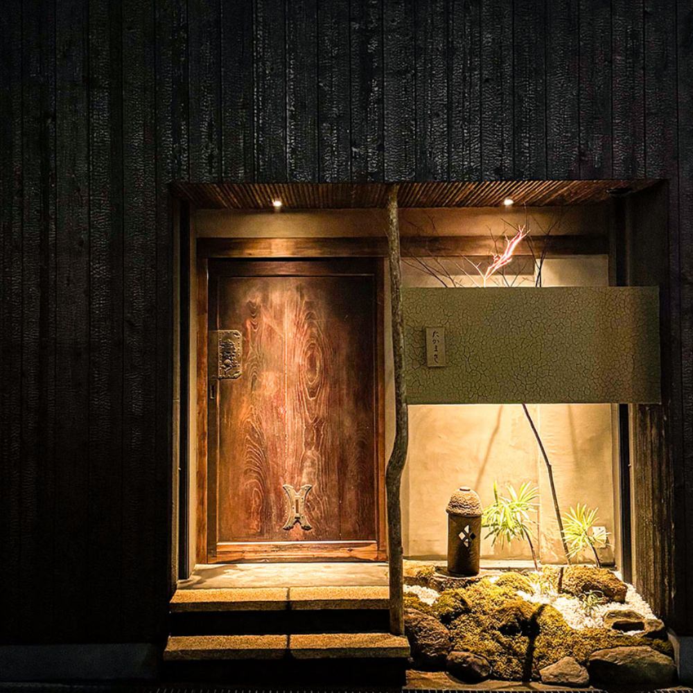 坪庭に面した木戸を開くと、そこは風雅な茶室の様な空間。